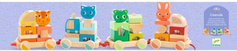 Több darabból álló minőségi fából készült húzható építőjáték. Ez az építőjáték számtalan módon variálható, különböző sorrendben építhető, így minden építéssel más vonat állítható össze. Erre garantáltan nem lehet ráunni. Ez a játék serkenti a képzeletet, fejleszti a kézügyesség és a kreativitást. Méretei: 57 x 11 x 13 cm