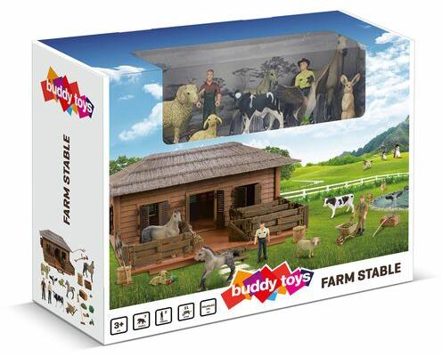 Játék istálló a farmon 21 kiegészítővel, BGA 1041 Játék farm istálló Mérete 58 x 24 x 28 cm Magas minőségű, tartós műanyagból készült Összesen 21 db ember- és állatfigurával, szerszámokkal, terményekkel kiegészítve 3 éves kortól ajánljuk