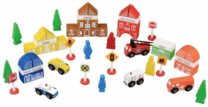 Színes, fából készült kocka szett 47 gyönyörű színű elemet tartalmaz a legkisebb építők számára. A kockák különböző formájúak, méretűek, gyönyörű színekkel és különféle alakzatokkal díszítve. A városépítő fa kockák fejlesztik a kicsik felismerő készségét , valamint megismerik a városok építőköveit. A szettből megépíthetőek különböző épülete