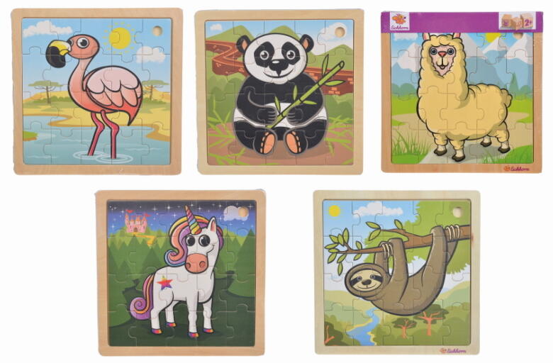 Az Eichhorn vállalat több mint 70 éve gyárt kiváló minőségű, tömör fából készült játékokat, melyek az FSC jellel ellátva garantálják, hogy az adott játék alapanyaga megfelel a Felelős Erdőgazdálkodás Tanácsa által szabott szigorú, környezettudatos termelés és gyártás feltételeinek. Az Eichhorn 20 db-os állatos fa puzzle 20 db kirakó elemet tartalmaz, melyeket m