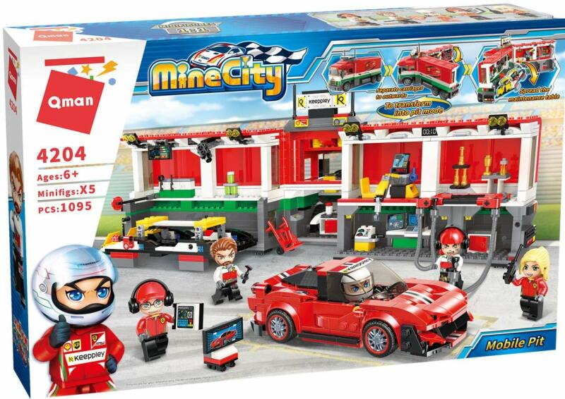 QMAN - MineCity Racing Cars - Teljes boxutca, kinyitható - Az elemek tökéletesen passzolnak a legnagyobb, piacvezető Dán kockák darabjaihoz. A részek precízen illeszkednek Ez a készlet az abszolút csúcsmodell a MineCity Racing Cars sorozatban, melyben a kamion összerakva 29 cm hosszú, 8 cm széles és 12cm magas. A dobozban összesen 1095 db építőkocka és 5 figura található. Ez