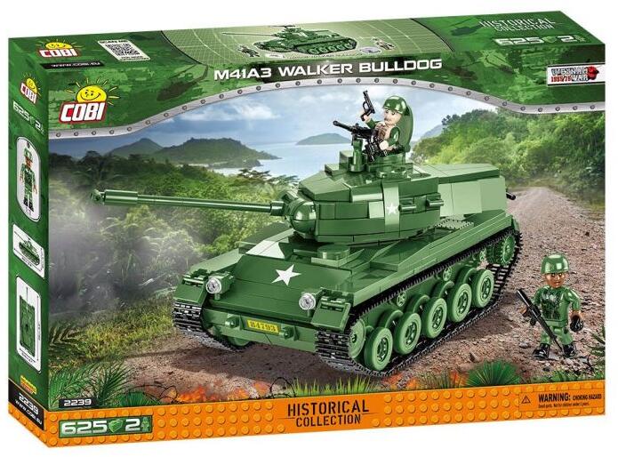 Az amerikai M41A3 Walker Bulldog könnyű harckocsit 625 darab COBI építőkockából építheted meg. A modell kiváló minőségű pad-nyomatokkal borított elemeket tartalmaz. A kialakítás tökéletesen tükrözi a történelmi prototípus eredeti formáit. Mozgó kerekek és működő lánctalpak, nyitható nyílások, hozzáférés a blokk alakú motorhoz, mozgatható torony és egy nagyon