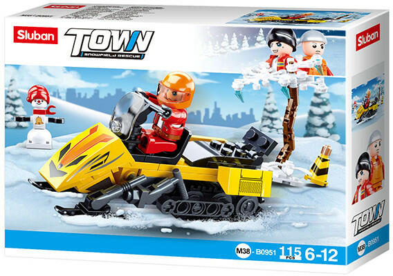 Ebből a Sluban építőjáték készletből egy sárga színű motorosszán építhető össze, amely a legnagyobb hóviharban is a bajba jutottak segítségére siet. Az összeépített motorosszán 11cm hosszú. A készlet összesen 115 építőelemből áll és egy 1 figurát is tartalmaz. A játékot 6 éves kor felett ajánljuk. A Sluban készletek legnagyobb előnye, a remek ár-érték ar