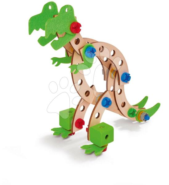 Fa építőjáték Dinosaurus a német Eichhorn vállalat műhelyéből egy igazán csodás ajándék kreatív gyerekek részére 5 éves kortól. Időtlen 100 darabos készlet lehetőséget nyújt kicsiknek 3 különböző fajta dínót összeállítani, mégpedig Stegosaurust, T-Rexet és Brontosaurust. A legapróbb részletekig kidolgozott fő elemek elsőosztályú bükkfából készültek, az