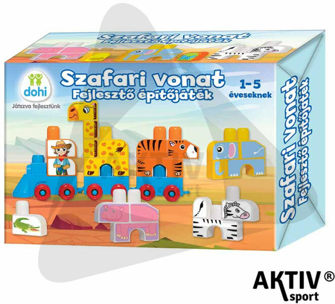 Színes szafari vonat fejlesztő játék, 1-5 éves kor között ajánlott. A szafari világa most beköltözik a gyerekszobába!A gyerekeknek nincs más dolga, mint a 12 db fából készült elemet a helyére tenni, hogy az állatkák indulhassanak a vonatos körutazásra. Mivel az elemek különböző színűek, illetve formájuk is eltérő, így játszva megtanulhatják ezeket. Induljon a kala