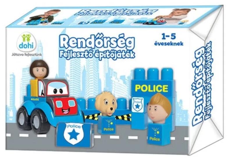 A rendőrségi készlet gyermekfigurákat és építőkockákat tartalmaz a rendőrség felépítéséhez. A kockákat, figurákat kisgyermekek kezére tervezték, könnyen kezelhetők, támogatják a kézügyességet és a logikus gondolkodást.