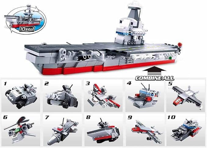 Sluban Army Builder - 10 into 1 - Repülőgépszállító csatahajó építőjáték készlet A Sluban Builder Army - 10 into 1 repülőgépszállító csatahajó építőjáték készlet egy különleges katonai építőjáték készlet a Sluban kínálatában. A 10 különböző katonai járműből egy repülőgépszállító csatahajó építhető össze. Így a teljes építőjáték szett val