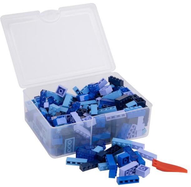 Q-BRiCKS®, 300 db-os, készségfejlesztő vegyes építőkocka készlet különböző kék színekben Ez a készségfejlesztő építőjáték NEM a LEGO® terméke, hanem Q-BRiCKS® márkájú. Az építőkockák teljes mértékben kompatibilisek a legtöbb ismert építőjáték márka elemeivel. Kötelező figyelmeztetés: 3 éves kor alatt nem ajánlott, lenyelhető kis elemek miatt fulladás