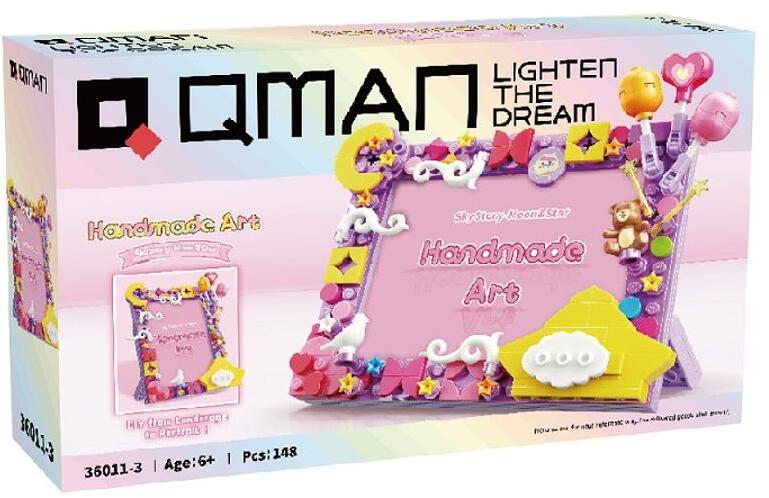QMAN® 36011-3, készségfejlesztő csajos fényképkeret építőjáték, Hold és csillagok. Nagyon részletgazdag, ötletes QMAN® építőjáték lányoknak, melyből egy csajos fényképkeret építhető a kedvenc fotódnak. Ez a készségfejlesztő csajos fényképkeret építőjáték NEM a LEGO® terméke, hanem az 1994. óta létező QMAN® márkájú. Az építőkockák teljes mértékbe