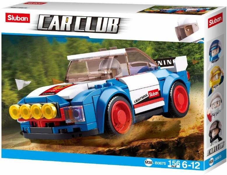 Sluban rallyautó építőjáték készlet. A készlet 138 darabos és egy figurát is tartalmaz. A Sluban építőelemek kompatibilisek más gyártók építőelemeivel is.
