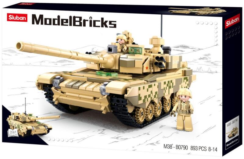 S luban Model Bricks - Army 2 az 1-ben nehéz tank építőjáték készlet 2 figurával. A Sluban különleges kiadása ez a 893 elemből álló modern tank építőjáték készlet, melyet részletes kidolgozás jellemez. Az összeépített tank 30 cm! hosszú! Történeti háttér: A 99-es típus, más megnevezései még a ZTZ–99, illetve a VZ–123 a Kínai Népköztársaságban kifejlesztet