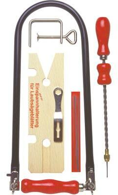 Lombfűrész készlet Jellemzők: Lombfűrész, lombfűrész lapokkal · Furdancs · Fecskefarok, a lombfűrészlap cserét segítő befogással és asztali szorítóval · Lombfűrész kulcs