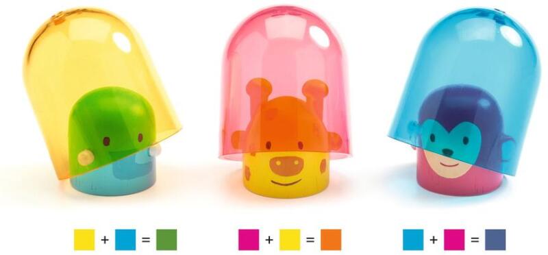Színező, színes vonat húzható játék Színes fa vonat, amelyet a gyermek a képzelete szerint állíthat össze, és 3 áttetsző színes búra van a készletben amelyekek a segítségével felfedezheti a színek keveredését. Majd más színűnek látszik az eredeti szín az átlátszó búra alatt. A három alapszínt, valamint egy sötétebb kék van használva a gazdagabb színárnyalat