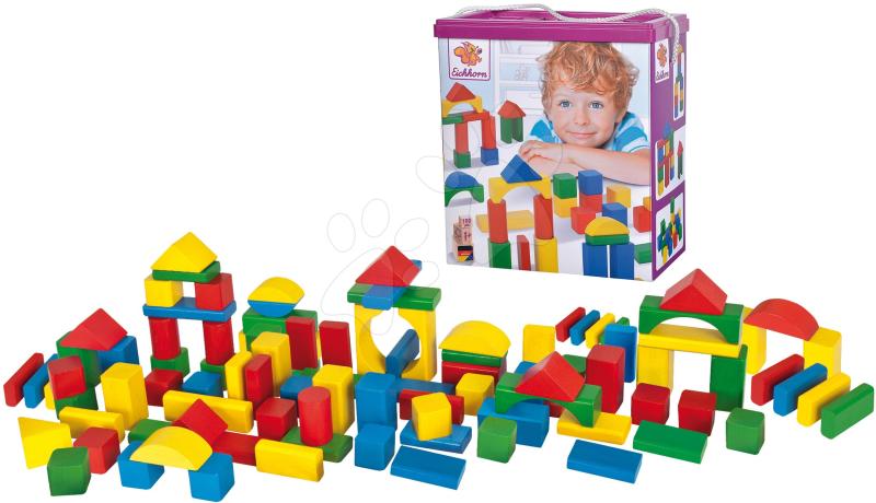 Fakockák Coloured Wooden Blocks a német Eichhorn gyártótól gyerekeknek 12 hónapos kortól. A pompás készletben 2,5 cm méretű 100 db színes kockát találunk, melyek hozzájárulnak a finom motorika, térbeli látás és logikai gondolkodás fejlődéséhez. A stílusos kockák kreatív és vidám hangulatot teremtenek a szobácskákban. A kockák minőségi bükkfából készültek, íg
