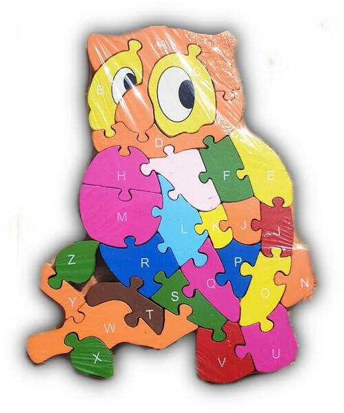 Fa kirakó bagoly termékünk kiváló készségfejlesztő játék . A puzzle használata közben játszi könnyedséggel tanulhatók a színek, számok és a betűk . A figura puzzle darabkáinak egyik oldalán betűk a másikon számok vannak elhelyezve, így a színes formák összeillesztésén túl a fentiek /betűk, számok/ elsajátításában is segítséget nyújt ez a remek játék. Jó