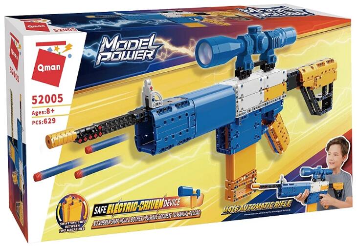 M4 játék gépkarabély automata puska – 8x-os nagyítású távcsővel, 2 tárral, 20db szivacs tölténnyel | 629 db építőkocka | más ismert márkákkal kompatibilis építőjáték | QMAN 52005 Hivatalos magyarországi forgalmazótól. Leírás: QMAN márkájú, minőségi, Lego-technic-kompatibilis építőjáték. Az élethű 75,5 cm hosszú játék gépkarabély, szivacstöltények ki