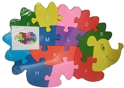 Fa kirakó süni termékünk kiváló készségfejlesztő játék . A puzzle használata közben játszi könnyedséggel tanulhatók a színek, számok és a betűk . A figura puzzle darabkáinak egyik oldalán betűk a másikon számok vannak elhelyezve, így a színes formák összeillesztésén túl a fentiek /betűk, számok/ elsajátításában is segítséget nyújt ez a remek játék. Jó s