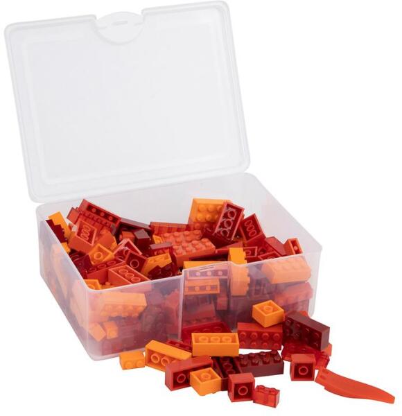 Q-BRiCKS®, 300 db-os, készségfejlesztő vegyes építőkocka készlet különböző piros és narancs színekben Ez a készségfejlesztő építőjáték NEM a LEGO® terméke, hanem Q-BRiCKS® márkájú. Az építőkockák teljes mértékben kompatibilisek a legtöbb ismert építőjáték márka elemeivel. Kötelező figyelmeztetés: 3 éves kor alatt nem ajánlott, lenyelhető kis elemek mi