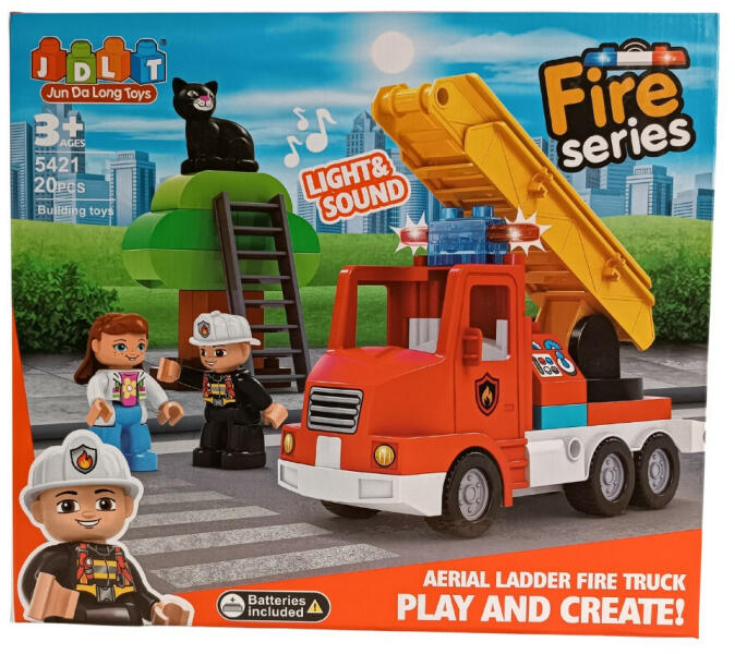 Tűzoltós építőjáték készlet. Építsd össze ezt a szuper tűzoltó autót! 20 darabból álló építőjáték segíti a gyermek kreativitását. A tűzoltó autó szirénázik hanggal fényekkel. Az építő készlet együtt használtató bármelyik másik építő játékkal.