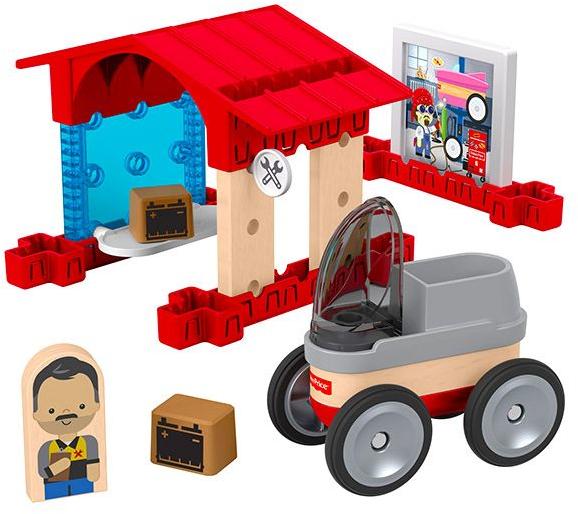 Fisher-Price - Wonder Makers garázs kis szett A Wunder Makers Garázs kis szettel a gyerekek megtervezhetik és elkészíthetik saját garázsukat. Több, mint 15 alkatrésszel rendelkezik, amelyeket különféle módon lehet kombinálni. Az óvodáskorú gyermekek megtervezhetik saját garázsukat. Ugyanazokkal az alkatrészekkel mindig más-mást alkothatnak. Mivel sok lehetőség van, a gyerek