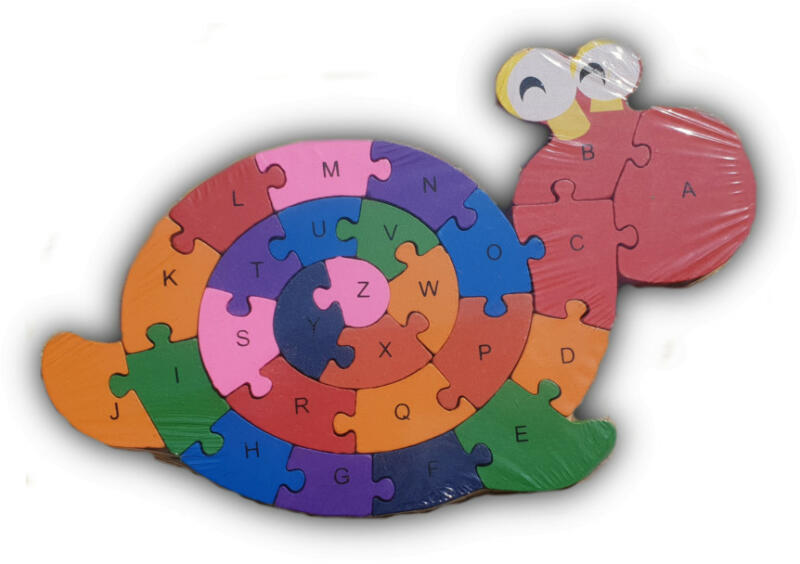 Fa kirakó csiga termékünk kiváló készségfejlesztő játék . A puzzle használata közben játszi könnyedséggel tanulhatók a színek, számok és a betűk . A figura puzzle darabkáinak egyik oldalán betűk a másikon számok vannak elhelyezve, így a színes formák összeillesztésén túl a fentiek /betűk, számok/ elsajátításában is segítséget nyújt ez a remek játék. Jó s