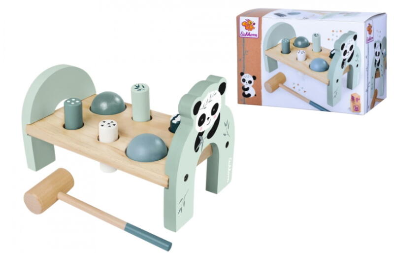 Az Eichhorn vállalat több mint 70 éve gyárt kiváló minőségű, tömör fából készült játékokat, melyek az FSC jellel ellátva garantálják, hogy az adott játék alapanyaga megfelel a Felelős Erdőgazdálkodás Tanácsa által szabott szigorú környezettudatos termelés és gyártás feltételeinek. Az Eichhorn Pandás fa kalapálós játék divatos pasztell színeivel hamar elkáp