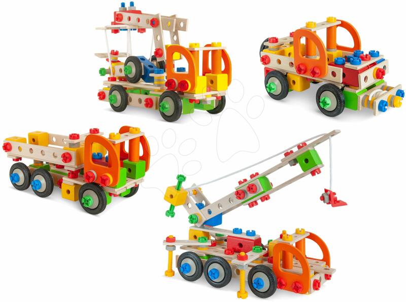 Fa építőjáték Constructor Tool Box munkagépek a német Eichhorn gyártótól. A modern játék kreatív gyerekek számára ajánlott 6 éves kortól. A 170-darabos készletből 4 pompás modell építhető – egy mobil daru, egy terepjáró, egy teherautó és egy szervizszolgáltató jármű. Az építőjáték részletgazdag elemei minőségi bükkfából készültek, tapintásra nagyon k