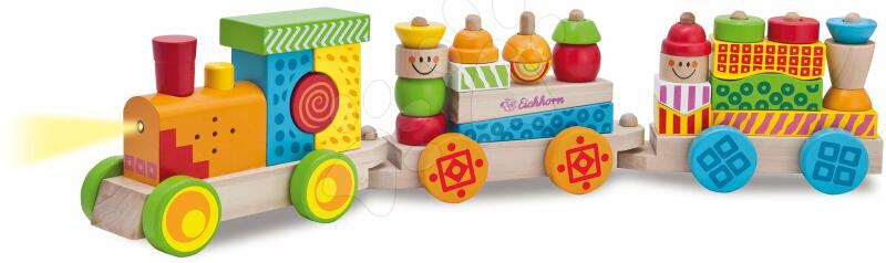 Favonat hanggal és fénnyel Colour Train a német Eichhorn gyártótól. A didaktikus játék gyerekeknek 12 hónapos kortól ajánlott. A színes mosolygós mozdony és hozzátartozó két vagon 28 kockával első látásra lenyűgözi a gyerekeket. A világító és hangeffekteket kiadó vonat szerelvény elsőosztályú nyírfából készült, ezzel közelebb hozza a gyerekekhez a természetet