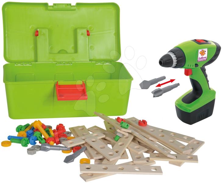 Fa épitőjáték fúróval Constructor Tool Box a német Eichhorn műhelyéből rengeteg örömteli pillanatot visz a gyerkőcök életébe már 3 éves kortól, akik előszeretettel bújnak a kis szerelők szerepébe. A zöld műanyag kofferben 63-darabos készlet vár a gyerekekre, melyben megtalálható fúrógép cserélhető fejekkel , szerelőlapok, különféle anyák, csavarok és rögzí