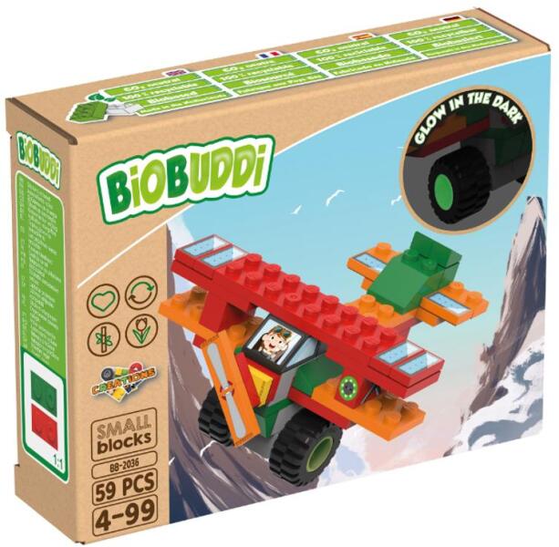 Az Elektromos repülőgép játékkészlet 60 építőelemből áll, melyek cukornádnövények maradványaiból készültek. Az elemek környezetbarátak, újrahasznosíthatók, fenntarthatóak és más márkákkal is kompatibilisek. A BiOBUDDi játékkészletek tökéletesek a gyermekek készségeinek fejlesztésére. Mindegyik modell könnyen megépíthető, és segít gyermekének játék köz