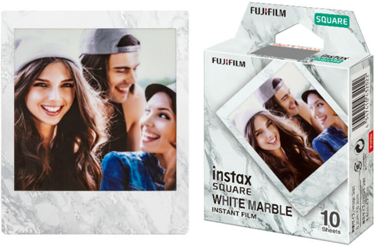 Fehér márvány díszítés Egy csomag 10 db filmet tartalmaz. Instax Square kamerákhoz. Instax Square kamerákhoz négyzet alakú film. Egy csomag 10db filmet tartalmaz. A lapok díszítése fehér márvány mintával lettek ellátva