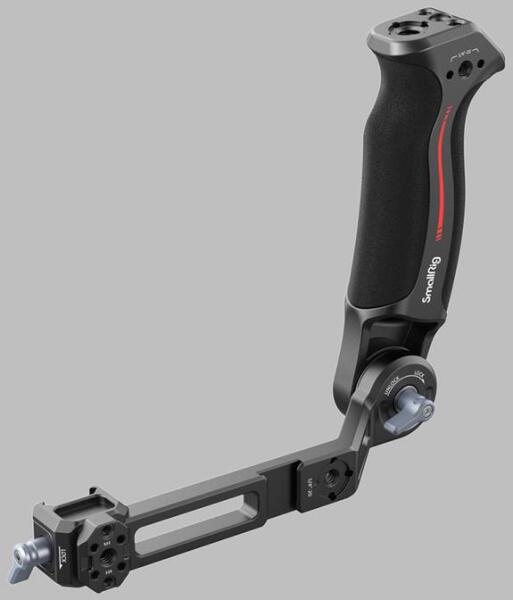 1. A DJI RS 2 / RSC 2 / RS 3 / RS 3 Pro / RS 3 mini Gimbalhoz tervezték. 2. Lehetővé teszi az alacsony szögű felvételeket és csökkenti a kar fáradtságát. 3. Beépített 1/4"-20-as menetek, ARRI 3/8"-16-os helymeghatározó furatok és hidegcipő tartozéktartók. 4. Ratchet gombbal meghúzható, 180°-ig állítható szög, oldalsó markolatként is használható. 5. Beépített NATO-s