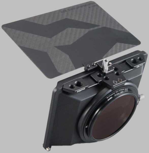 A Tiltaing Mini Matte Box a Tilta-tól egy könnyű, kompakt, cserélhető rögzítési rendszerrel ellátott Matte Box, amely alkalmas kisebb tükör nélküli vagy DSLR kamerákon való használathoz. Egy szabványos 4 x 5,65" méretű szűrőt fogad be szűrőtálca használata nélkül, és négy adaptergyűrűt tartalmaz a Matte Box objektívre történő rögzítéséhez. A mellékelt széns