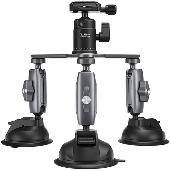 Telesin háromkarú tapadókorongos tartóKészítsen felvételeket új nézőpontból. A Telesin tartó 3 kart használ tapadókorongokkal a stabilitás érdekében. A TE-TSB-001 sikeresen rögzíthető sík felületekre, és a széles körű kompatibilitás lehetővé teszi különféle eszközök csatlakoztatását. A forgatható fejnek és a magasságállításnak köszönhetően könnyedén b