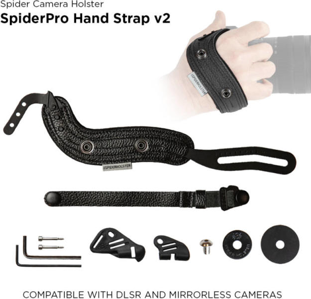 A SpiderPro v2 csuklópánt DSLR és MILC fényképezőkkel is kompatibilis, legyen az markolatos vagy anélküli változat. A SpiderPro v2 csuklópántot sokkal egyszerűbb a gépre szerelni, mint az előző verzióját és a három rögzítő pöcök biztosabb rögzítést is biztosít. A csuklópánt bármely Spider cserelappal, hagyományos cserelappal vagy mellékelt csavarral rögzíthető a