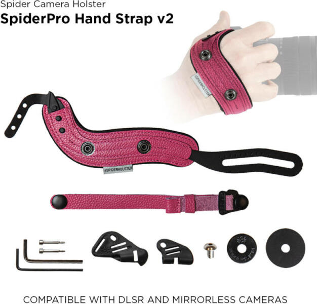 A SpiderPro v2 csuklópánt DSLR és MILC fényképezőkkel is kompatibilis, legyen az markolatos vagy anélküli változat. A SpiderPro v2 csuklópántot sokkal egyszerűbb a gépre szerelni, mint az előző verzióját és a három rögzítő pöcök biztosabb rögzítést is biztosít. A csuklópánt bármely Spider cserelappal, hagyományos cserelappal vagy mellékelt csavarral rögzíthető a