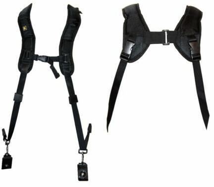A vállpánt segítségével két kamerát is gond nélkül hordozhatunk. Kényelmesen és biztonságosan válhatunk fényképezőgépet. A hordszíj több ponton állítható, így kényelmesen, a megszokott magasságban tárolhatja fényképezőgépét. Gyors és egyszerű hozzáférést biztosít Az egyedülálló U alakú neoprén párnázat egyenletesen oszlatja el a súlyt, valamint a mozgá
