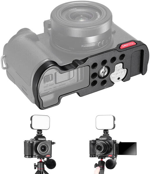 Anyag: alumínium Komaptibils: Panasonic Lumix G100 Szabadon nyitható akkufedél Csatlakozás: vakupapucs foglalat, 1/4" csavarmenetek Arca Swiss foglalatba rakható