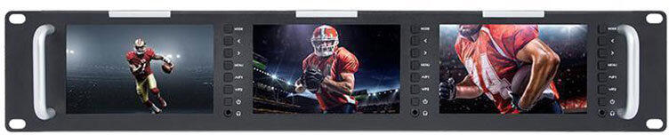 Feelworld T51 hármas rack monitor A Feelworld T51 egy ultravékony, 3G-SDI/HDMI 3 RU rackbe szerelhető monitor GPIO hálózati vezérléssel, amelyet akár 3 1080p60 jel hatékony sugárzására terveztek. A D71 képernyőnként 3G-SDI, HDMI és kompozit BNC bemenetekkel és kimenetekkel, valamint minden panelhez RCA audio bemenettel rendelkezik. 3 db 5 hüvelykes TFT képernyő 800 x 480 pixel