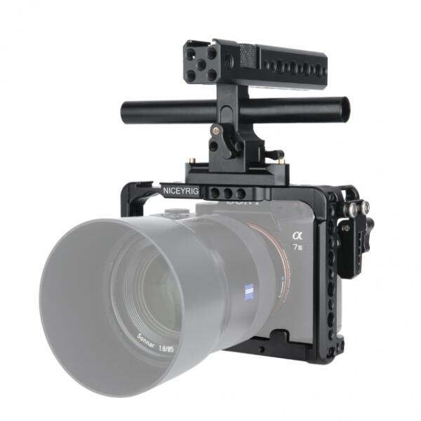 Anyag: alumínium ötvözet Súly: 450g Csatlakozás: 1/4", 3/8", 15mm rod, NATO fogantyú A csomag tartalma: 1x Camera cage 1x Nato fogantyú 1x Nato Rail 1x 15mm rod (15cm) 1x HDMI cable clamp 2x Imbuszkulcs
