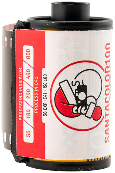 35 mm-es film ISO 100 36 Expo A SantaColor100 egy 35mm-es 36képkockás film, ISO100-as érzékenységgel. C-41 színes eljárással hívható. Színei élénkek, buja zöldjei és erőteljes vörös színeivel széles mozgásteret kínál finom szemcsézettség mellett. Ennek a rugalmasságnak köszönhetően, a film akár ISO50-ig "PULL"-olható és ISO800-ig „PUSH-olható.