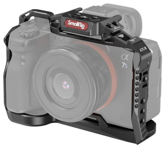 Dedikált cage a Sony Alpha 7S III-hoz zökkenőmentes kialakítássalRendelkezik NATO-sínekkel, vakupapuccsal, és több 1/4-20, 3/8-16 menetes furattal. Két csavarral rögzíti a kamerát, hogy megakadályozza az elcsavarodást. Magnézium-alumínium ötvözetű anyagból készült, így a tömege 40%-kal csökkent. Védi a kamera HDMI-portját. A Sony Alpha 7S III-hoz készült SmallRig cage