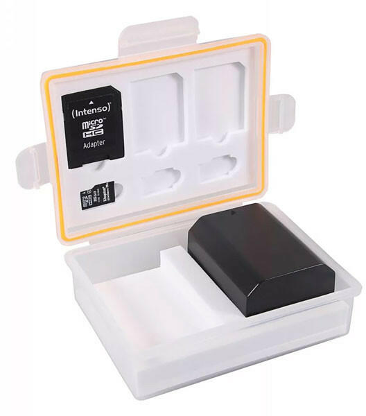 Kompakt, vízálló dobozka akkumulátoroknak és memóriakártyáknak. 3 SD és 3 microSD memória kártyát rakhatsz bele. Külső méret: 90 x 70 x 35 mm Súly: 40g
