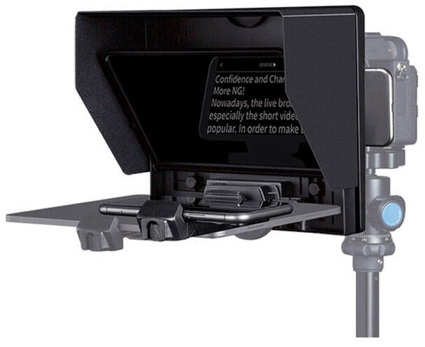 Hordozható összecsukható súgógép 10" Beamsplitter üveg iOS és Android alkalmazás 8 x objektív adaptergyűrű 2 x okostelefon habszivacs gyűrű Bluetooth távirányító 5 x 1/4"-20 menet Mikroszálas kendő és hordtáska A FeelWorld TP10 hordozható összecsukható súgógép okostelefonhoz/tablethez/DSLR-hez/ MILC-hez használható FeelWorld TP10 hordozható összecsukható súgógép