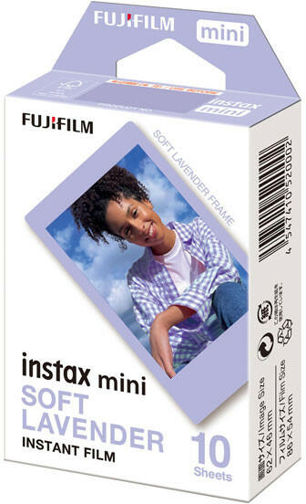 Fujifilm Instax Mini fényképezőgépekhez Lágy levendula színű keretek Hitelkártya méretű nyomatok Hely az egyéni íráshoz Ez az egy csomag Fujifilm Instax Mini Soft Lavender instant film 10 lap színes instant filmet tartalmaz, amely kompatibilis az Instax PAL digitális fényképezőgéppel, az Instax Mini instant fényképezőgépekkel és az összes Instax Mini Link okostelefonos nyo
