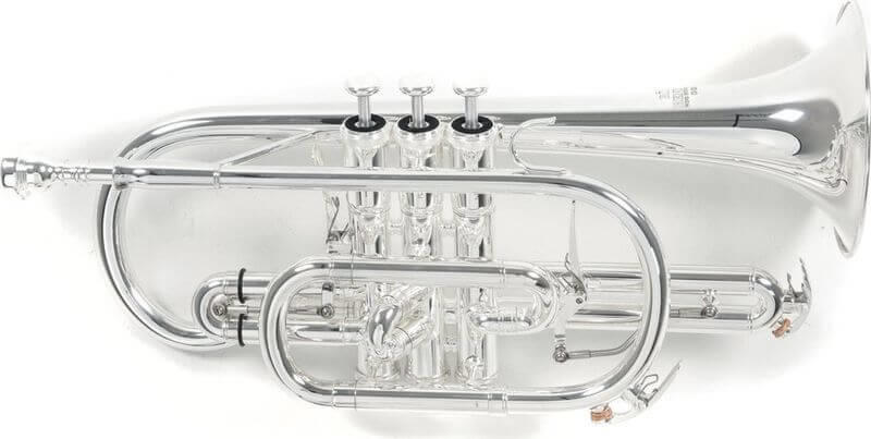 ML-furat Sárgaréz tölcsér , Ø 119 mm arany/réz befúvócső újezüst cúgok nemesacél szelepek Trigger a 1. és 3. ventilcúgon 2 vízkieresztő billentyű ezüstözött könnyű négyszögletes tok hátizsák-garnitúrával