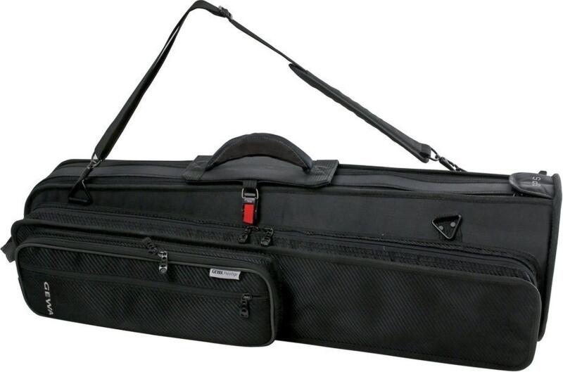 GEWA 255210 Tenor Harsona Táska SPS-System tölc sér 8,5"-ig párnázott fabetétek védik a tölcsért 5 oldalról zárt rétegelt lemezből készült doboz a cúg-rekeszben felvarrt tartozékzseb, vállpánt fixre varrt, állítható luxus-hátizsákpántok újfajta, besüllyeszthető gyorszárral (GEWA-System) a hevedertartó zseb egyidejűleg kottazsebként is használható cúgtartó méret