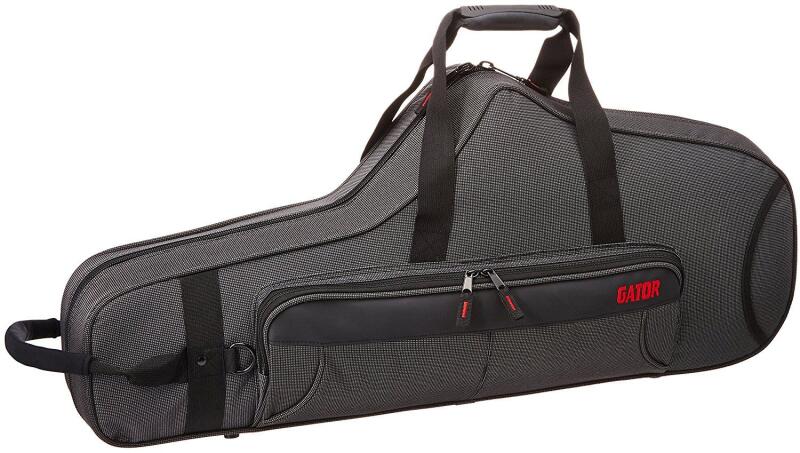 GATOR GL-TENOR SAX Lightweight Tenor Szaxofon tok Könnyű, szilárd Nylon külső Plüss borítású tömör EPS hab belső Belső Fúvóka tartók Összekötő Komfort Grip fogantyú Állítható Külső tároló zseb Eltávolítható vállpántok Csúszásgátló gumi vápárna Megerősített D-gyűrű a vállheveder rögzítéséhez és eltávolításához Megerősíte tt oldalsó fogantyú Sz