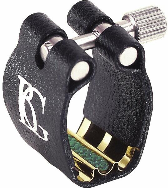 fúvós hangszer tartozék: klarinét szorító, bőr kivitel, szinte minden műanyag fúvókás klarinéthoz megfelelő, francia presztízs márka, professzionális minőség, alkalmas kezdőknek, haladóknak és profiknak egyaránt, fekete szín, aranyozott alátét a gyorsabb, egyszerűbb hangképzés miatt