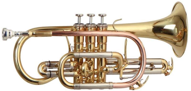 ROY BENSON CR302 RB701093 Bb Kornett ML-furat sárgaréz tölcsér, 119 mm arany/réz befúvócső újezüst cúgok nemesacél szelepek Trigger az 1. és a 3. ventilcúgon 2 vízkieresztő billentyű lakkozott felület könnyű négyszögletes tok hátizsák-garnitúrával